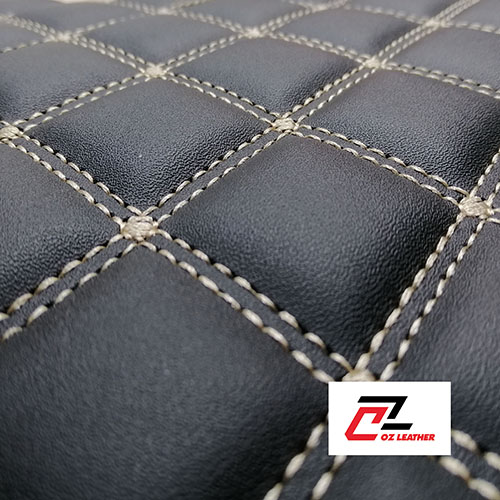 OZ Leather cho ra đời những mẫu vải may lót sàn 5D với màu sắc, họa tiết độc lạ, được nhiều khách hàng săn đón. Một trong số đó là vải lót sàn 5D Da PVC hình vuông nhẵn đen chỉ kem 2 đường chỉ - B13.