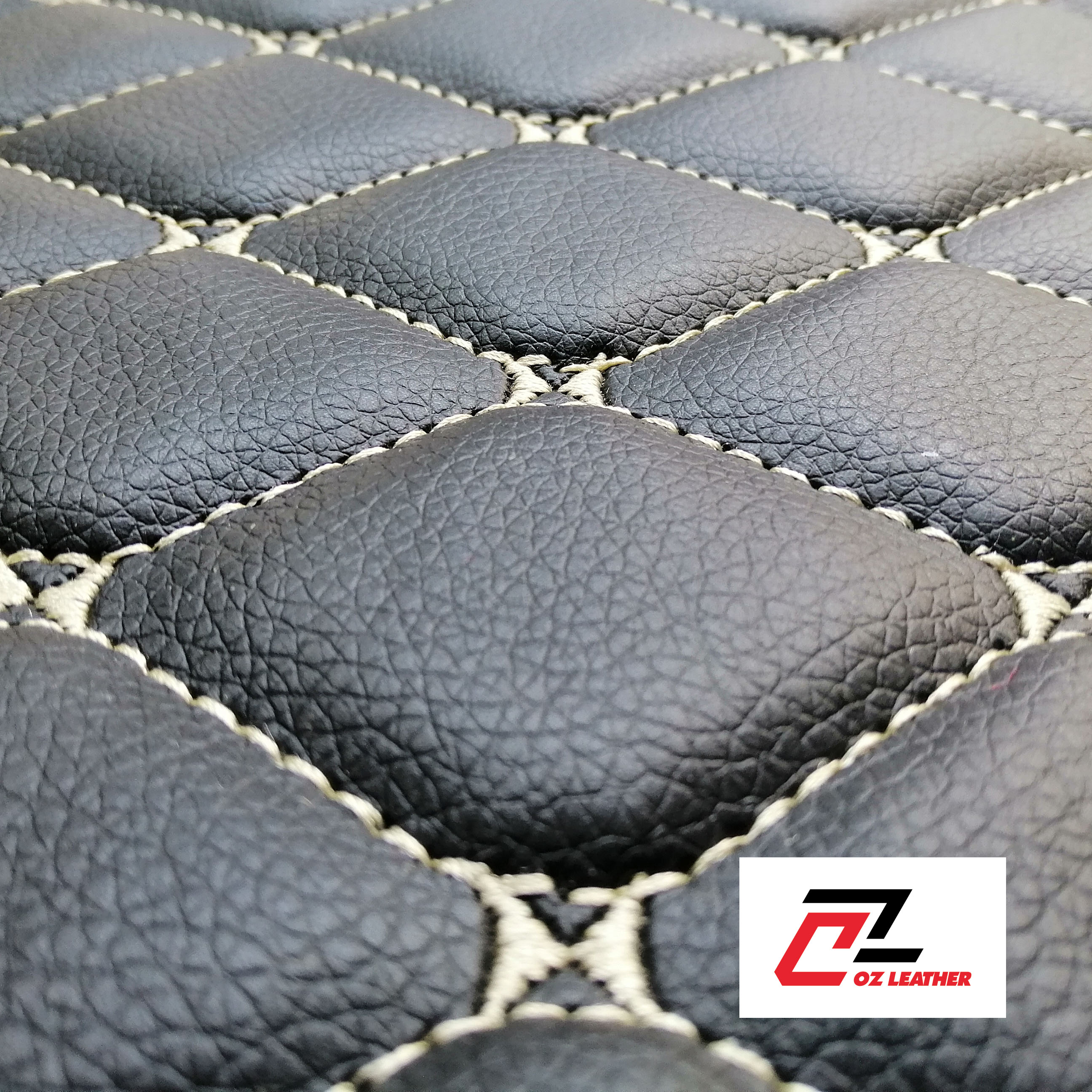 Vật liệu lót sàn 5D Da PVC hình thoi sần đen chỉ trắng - B7 chuyên dùng may lót sàn xe.