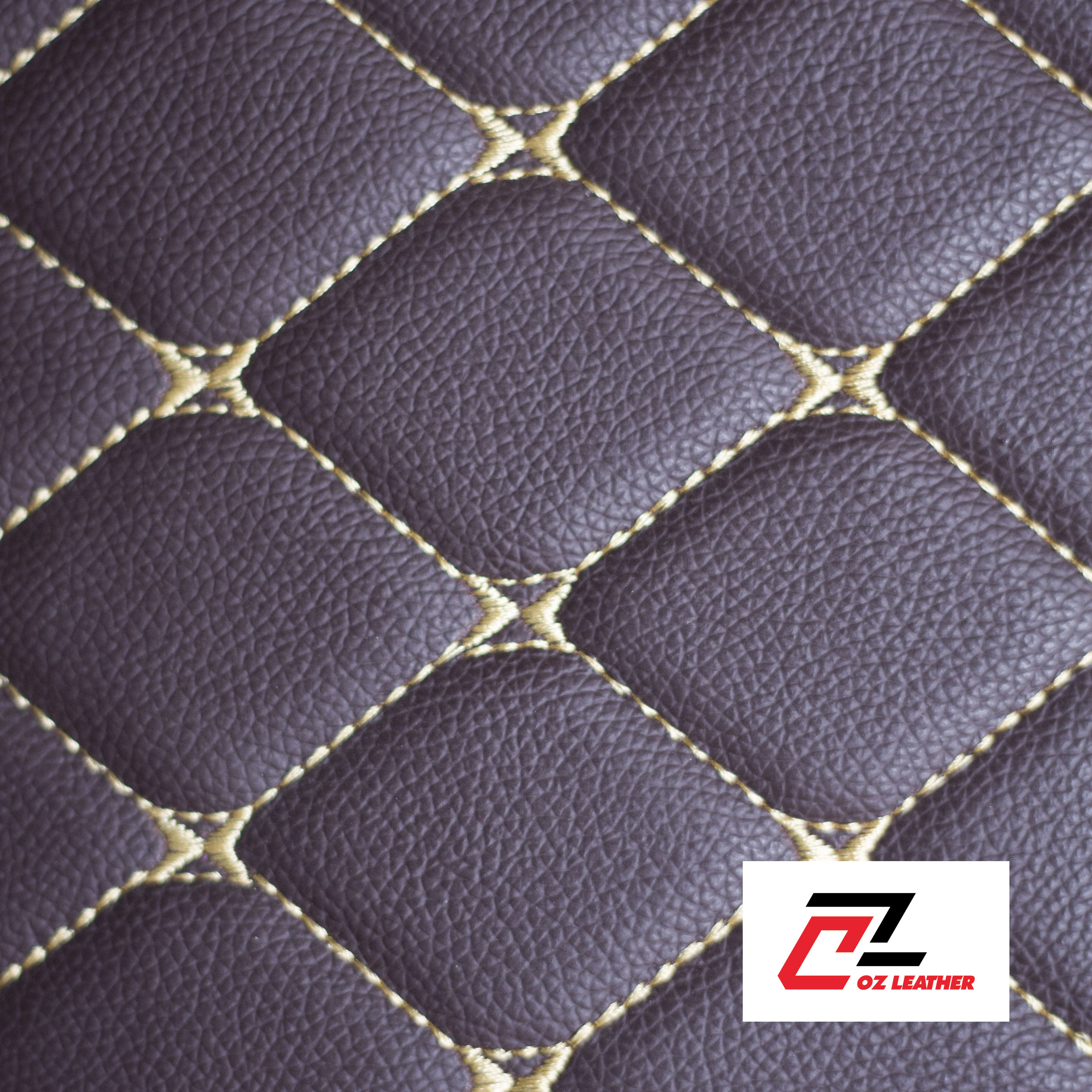 Vật liệu lót sàn 5D Da PVC hình thoi sần nâu chỉ vàng - B10 chuyên dùng may lót sàn xe.