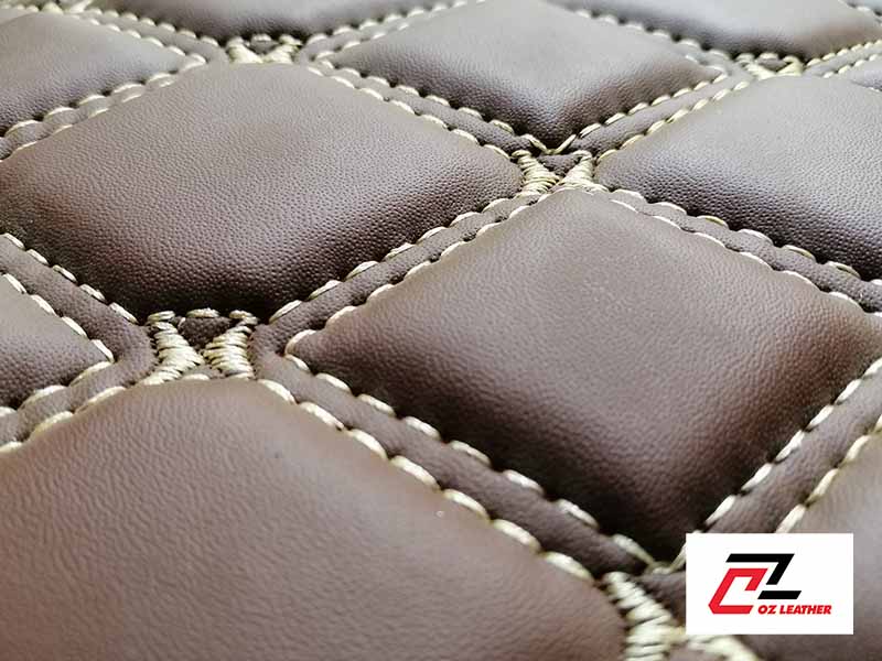 Vật liệu da 5D Ốp Trần Da Pvc hình thoi nhẵn nâu chỉ kem 2 đường chỉ - B18 OZ Leather có cấu trúc 3 lớp hoàn hảo, giúp vật liệu bền, chắc, dễ tạo hình và thi công thành phẩm: